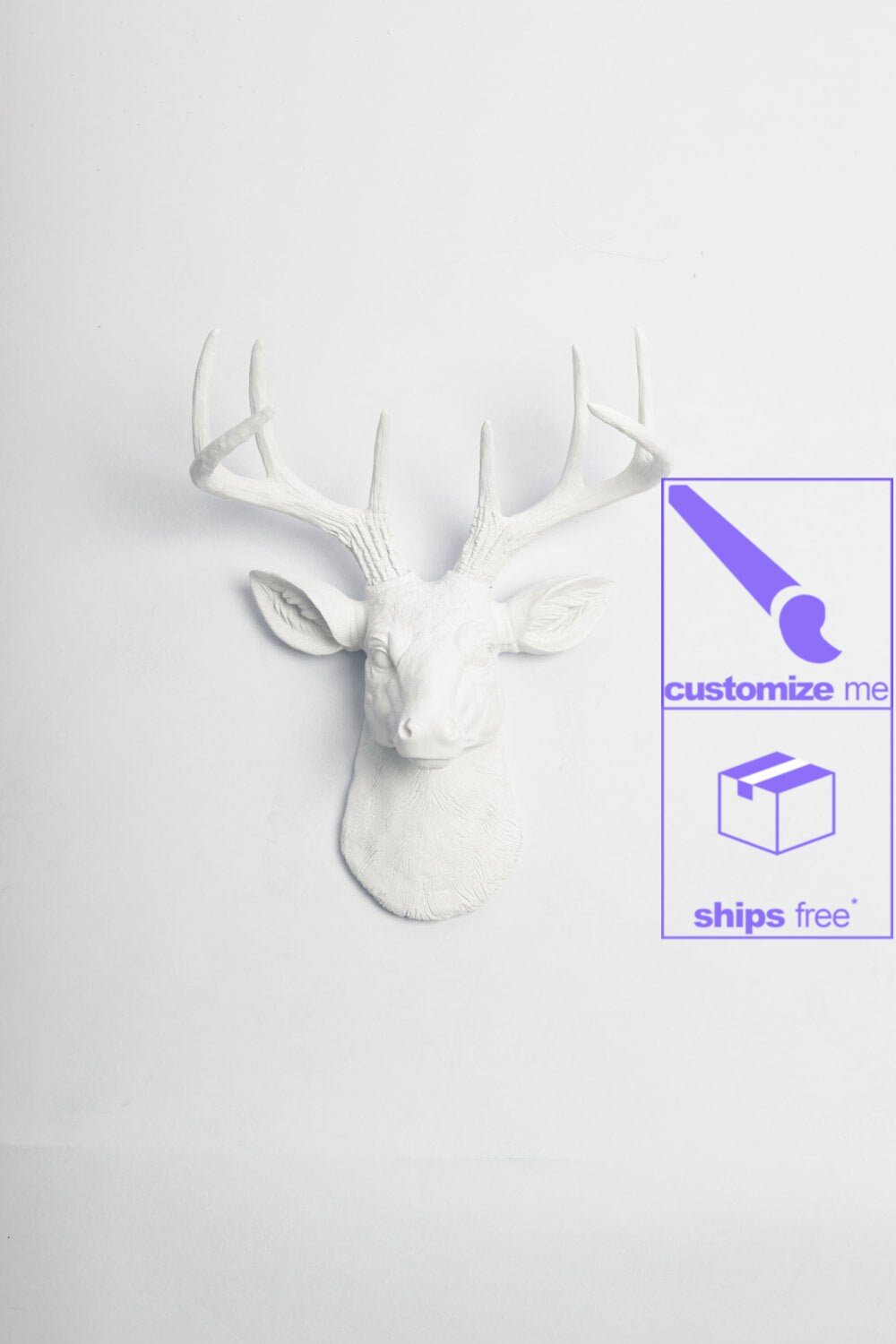 White Gold Antlers Faux Deer Head Decor By Wall Charmers Etsy