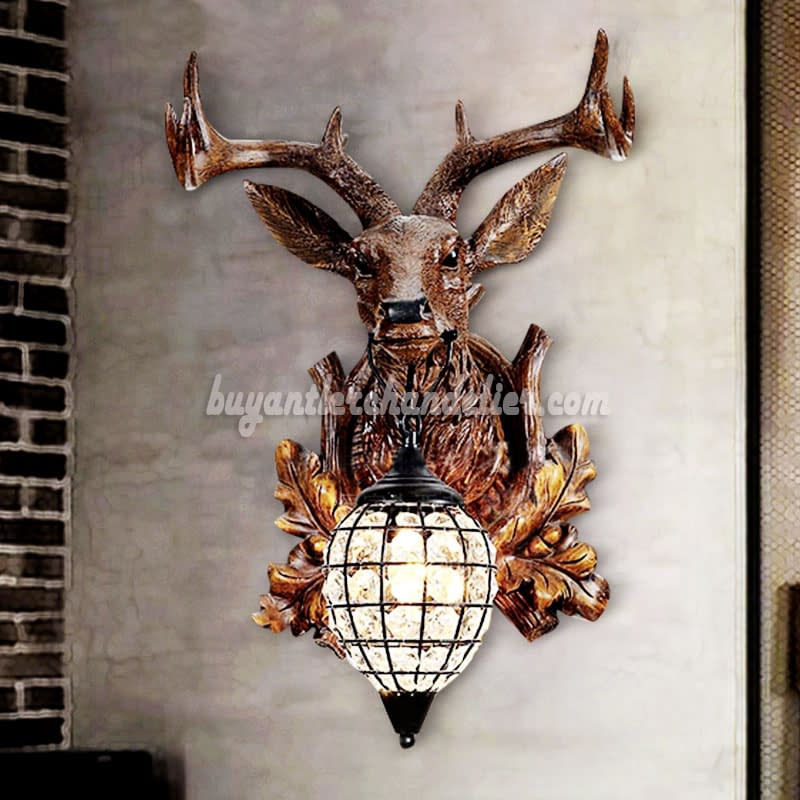 Deer Head Wall Lamps Crystal Lights Faux Wood Taxidermy Mount