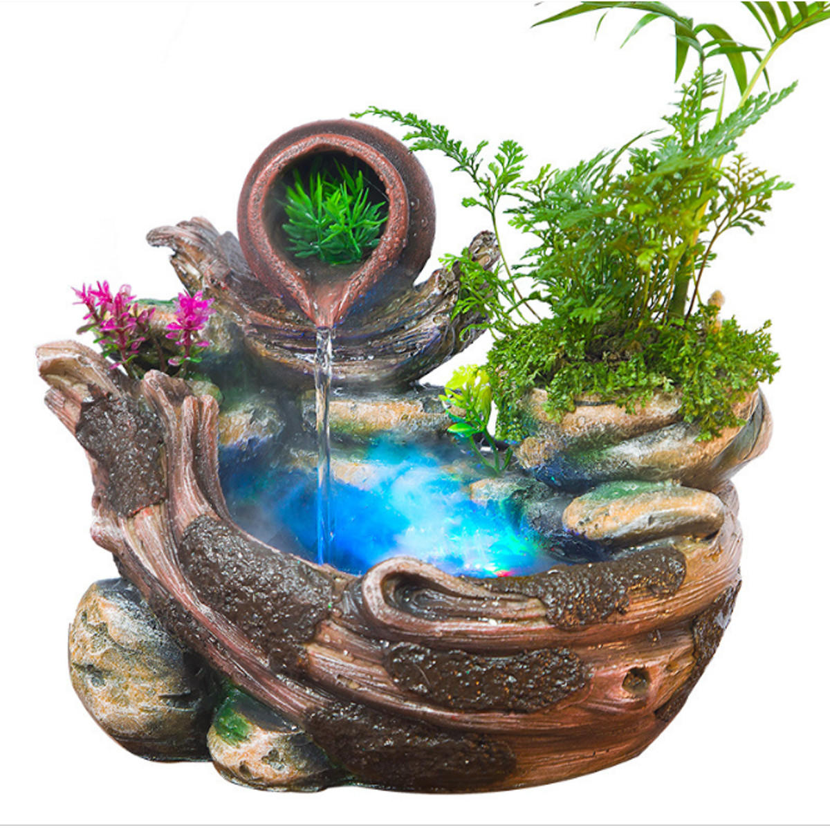 Resin Rockery Water Fountain Led Lights Atomization Home Office