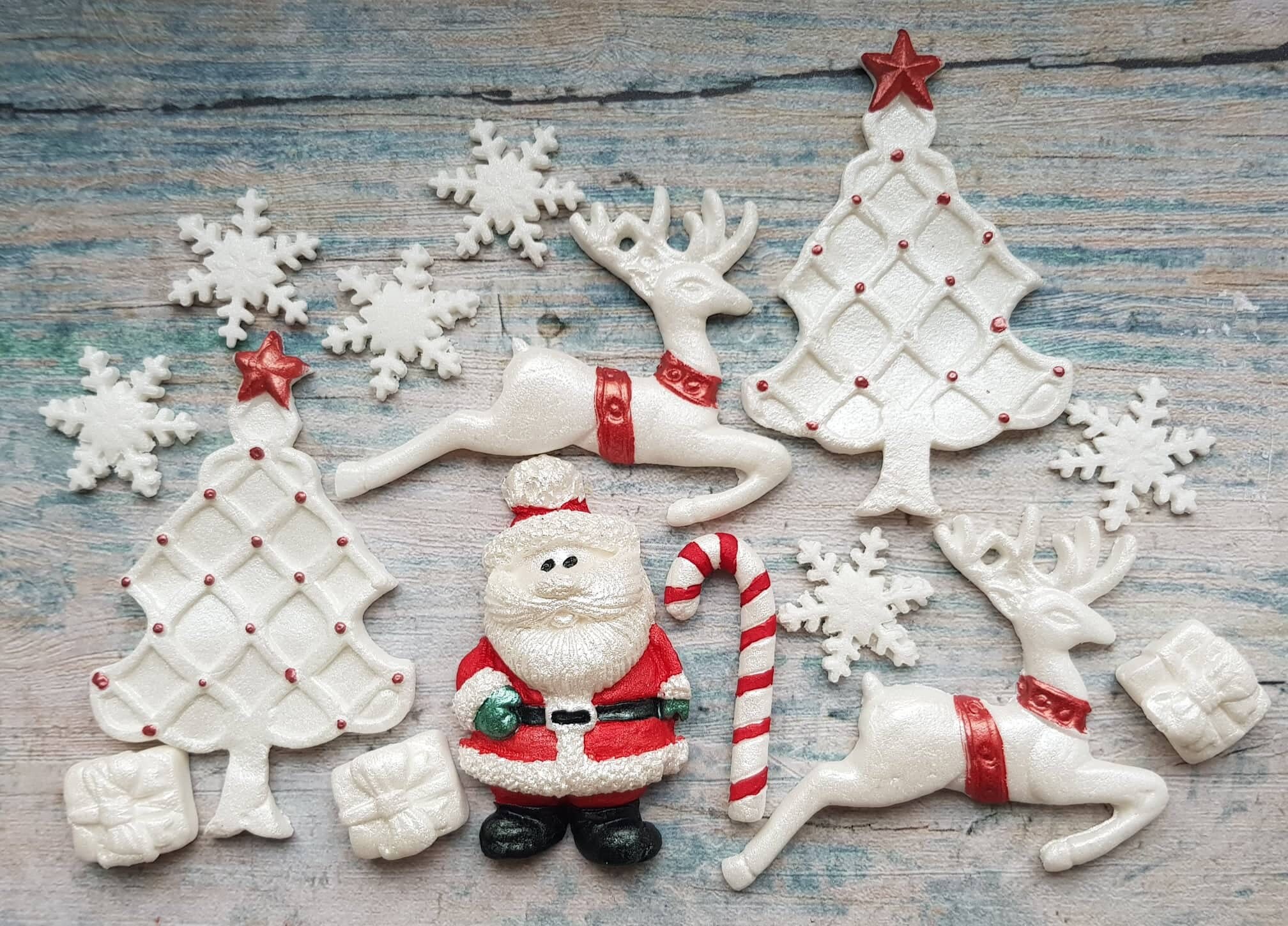 Edible Christmas Decorations Santa Snowman Robin Poinsettias Holly