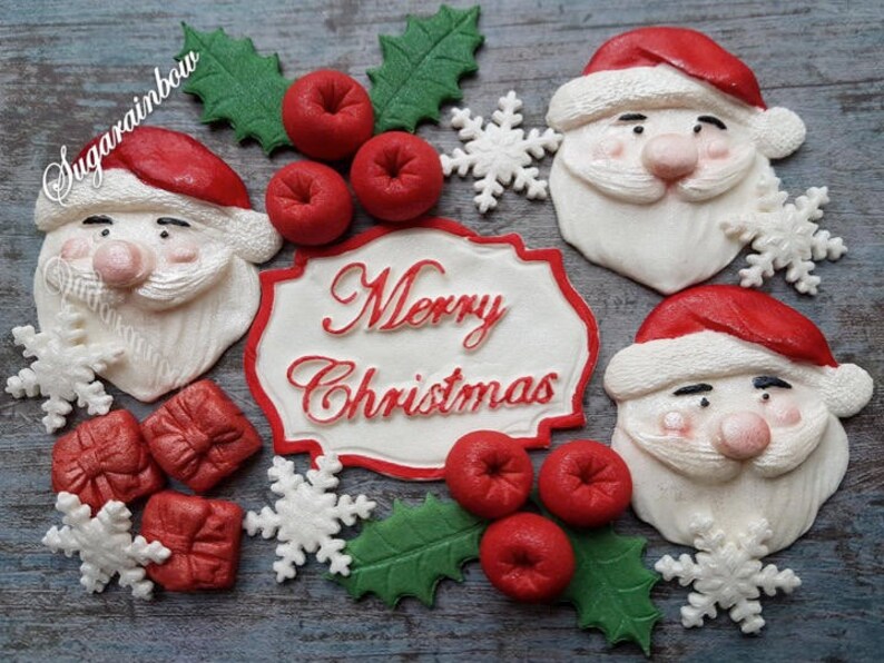Edible Christmas Decorations Cake Cupcake Snowflakes Santa Etsy