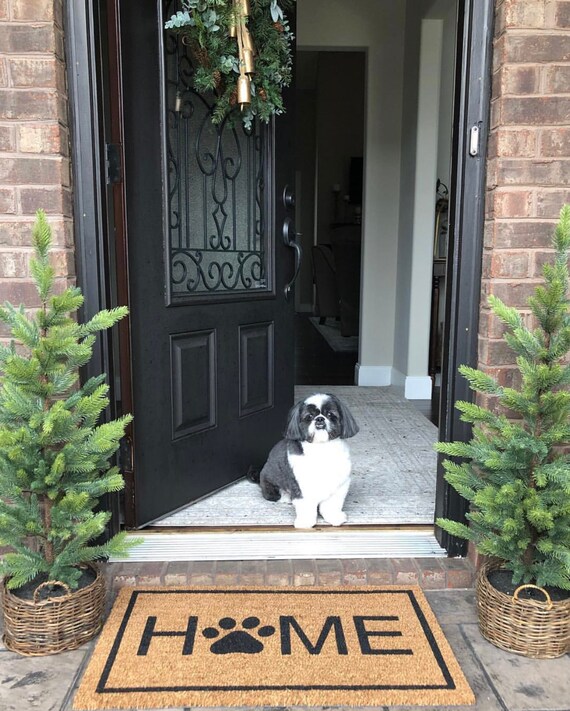 Home With Dog Paw Doormat Front Door Decor Entry Decor Etsy