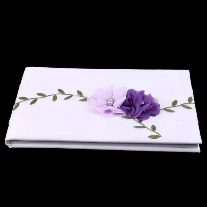 Perfeclan Wedding Guest Book White Lace Purple Flowers Signing