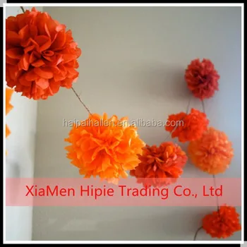 6 Orange Hanging Tissue Paper Pom Poms Flower Party Garland