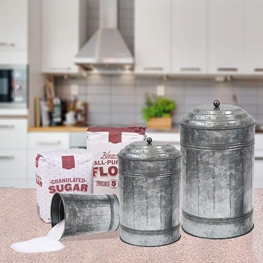 Amazon Com Antique Style Galvanized Metal Lidded Rustic Canister