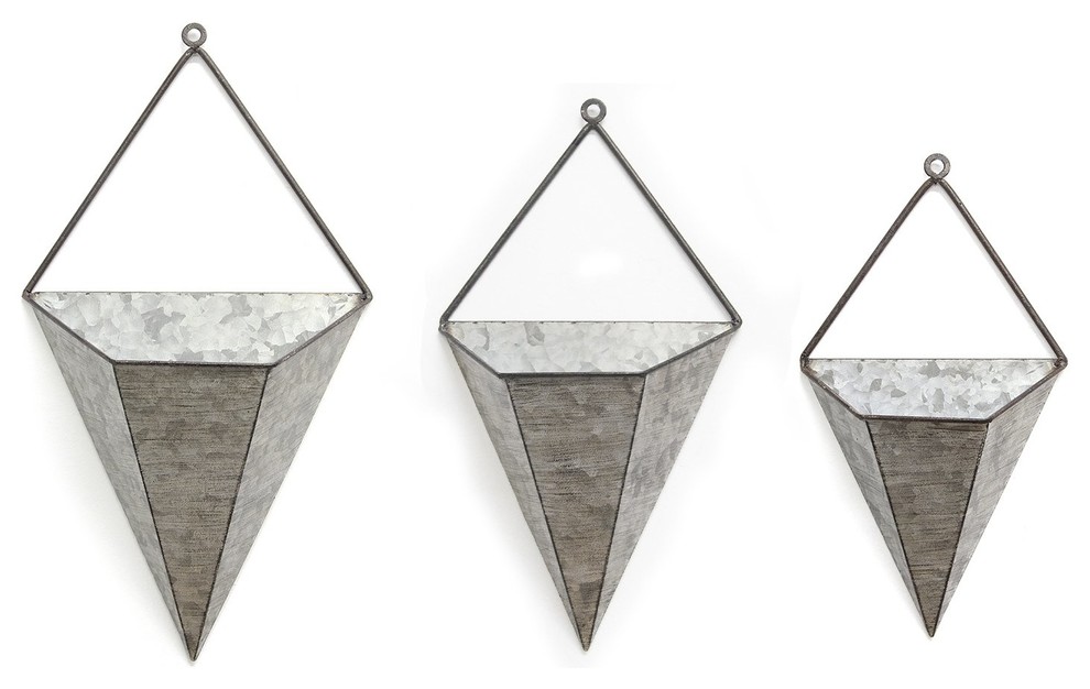 Stratton Home Decor 3 Piece Triangular Galvanized Wall Planter Set