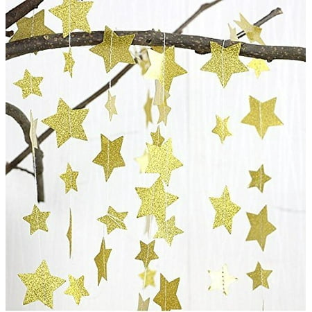 Christmas Gold Glittery Star Garland Decoration 5 Meters Elegant