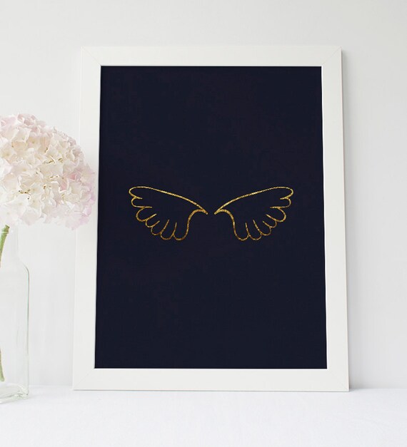 Navy Blue And Gold Angel Wings Art Printable Gold Angel Wings Etsy
