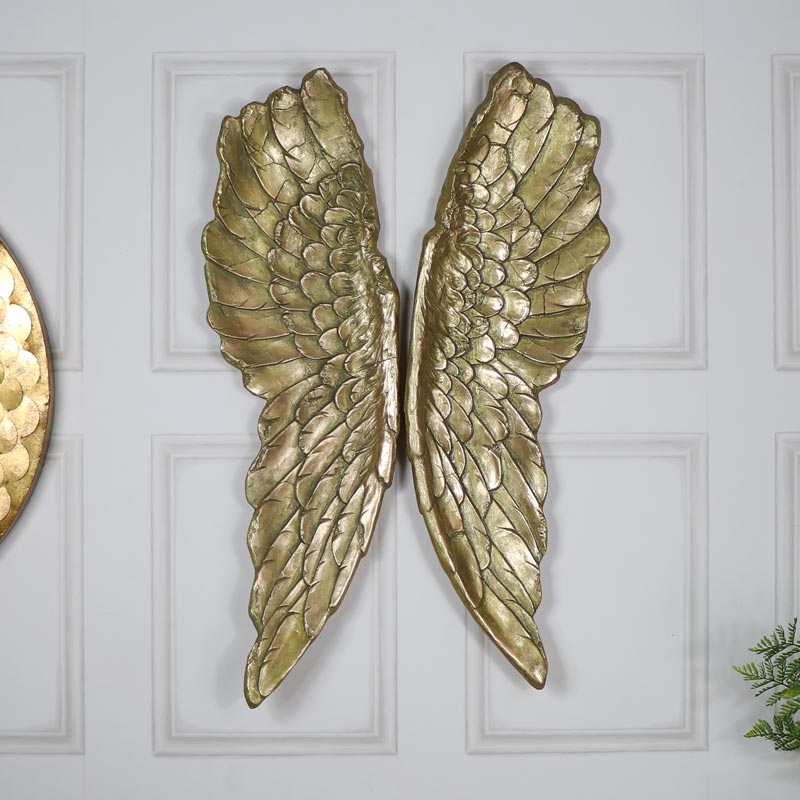 Hanging Decorations X Large Angel Wings Wall Hanging Aged Gold