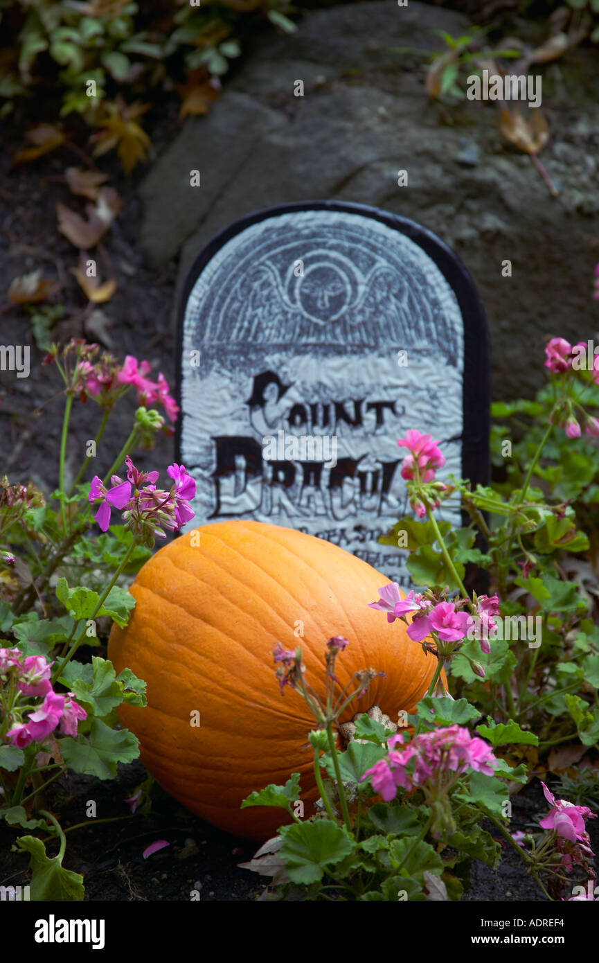 Orange Pumpkin And Count Dracula Gravestone Halloween Decorations