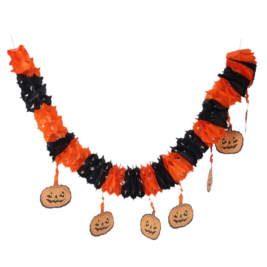Pumpkin Shape Paper Chain Banner Halloween Party Decoration