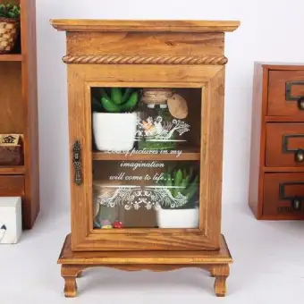 Vintage Display Cabinet Home Decoration With Glass Door Lazada