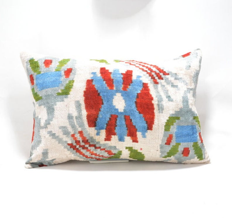 Ikat Silk Velvet Pillow Cousin From Uzbekistan 23 6 X 16 Etsy