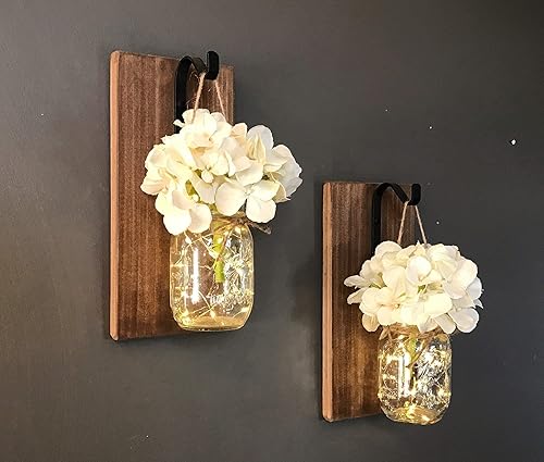 Hanging Painted Mason Jar Wall Sconces Rustic Home Decor Wall