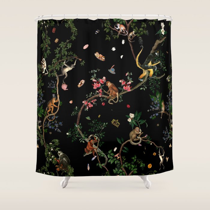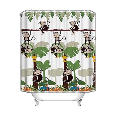 Monkey Bathroom Decor Monkey Shower Curtain With 12 Shower Hooks