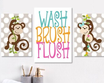 Girl Monkey Bathroom Wall Art Monkey Bathroom Decor Shared Etsy