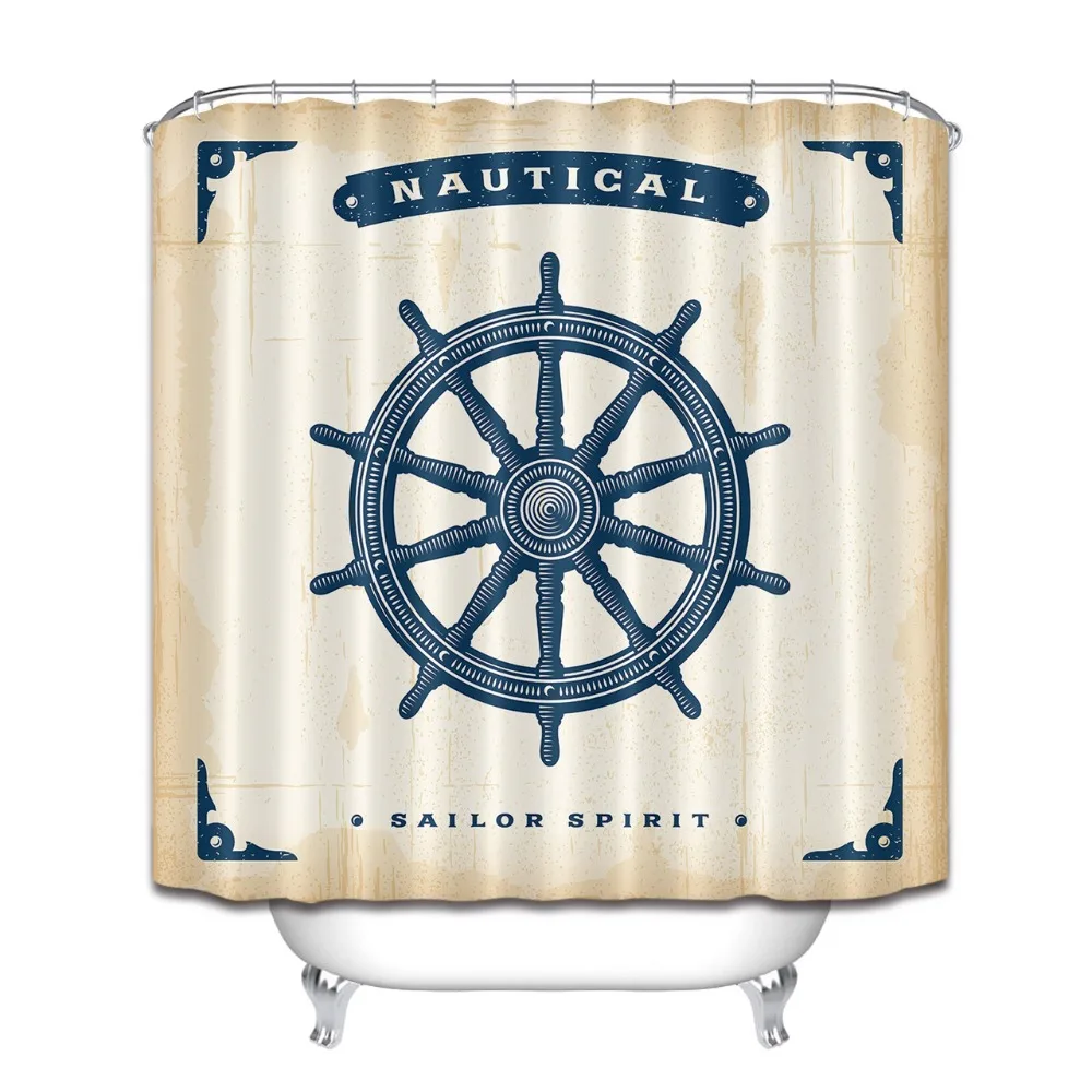 Vintage Marine Custom Polyester Fabric Retro Nautical Rudder Print