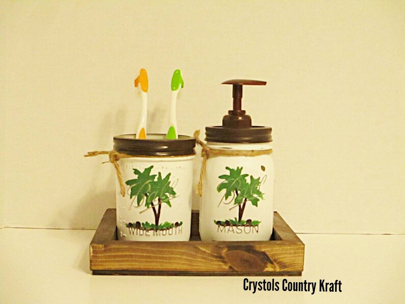 Palm Tree Bathroom Set Tropical Tree Soap Jar And Toothbrush Etsy
