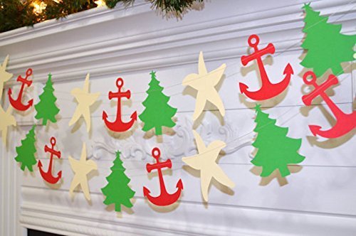 Amazon Com Nautical Christmas Garland Red Anchor Cream Starfish