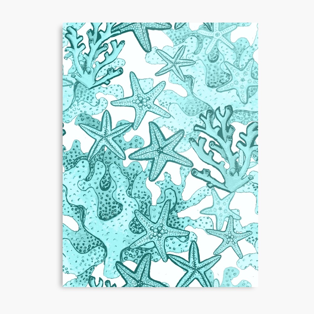 Starfish Watercolor Aqua Coral Reef Ocean Home Decor Metal Print