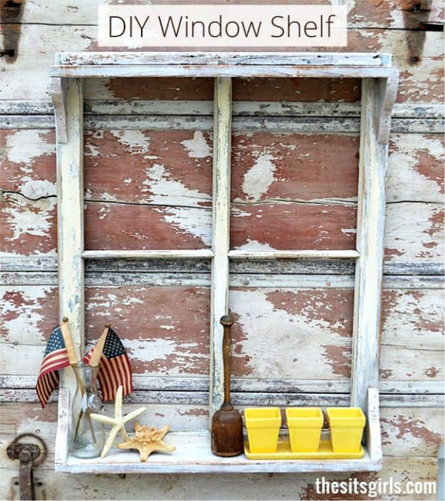 Repurposed Old Window To Shelf Decoration Old Window Decor Old