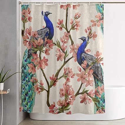 Amazon Com Watercolor Cherry Blossom Peacock Bath Shower Curtain