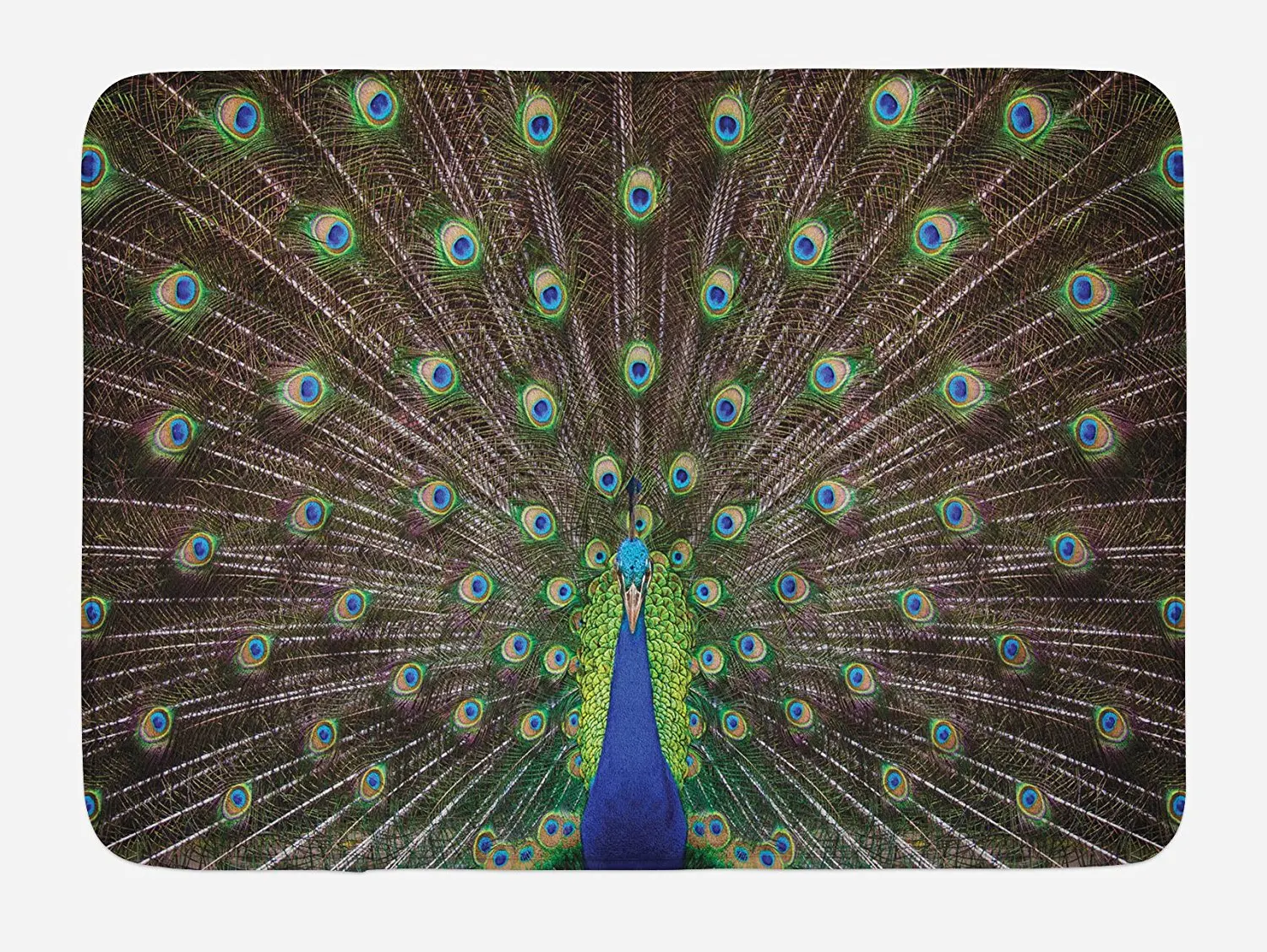 Buy Peacock Bath Mat By Lunarable Portrait Of Peacock With Huge