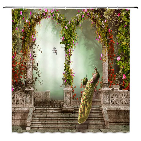 2019 Beautiful Peacock And Plant Flower Shower Curtains Building