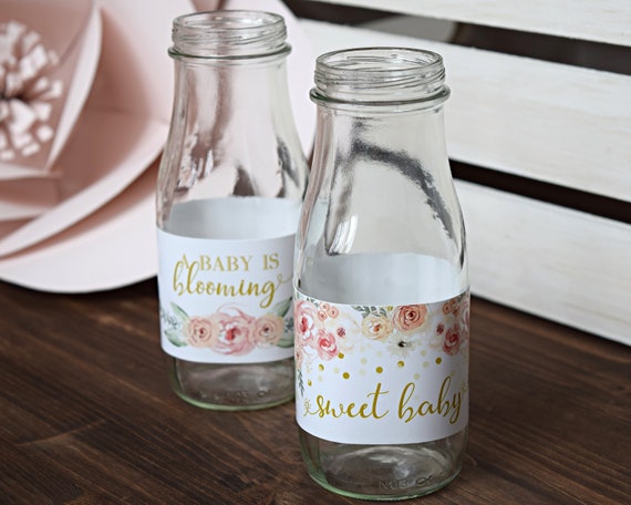 Pink And Gold Baby Shower Water Bottle Labels Floral Baby Shower