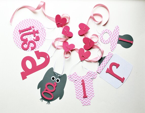 Owl Baby Shower Decorations Pink Chevron Grey It S A Girl Etsy