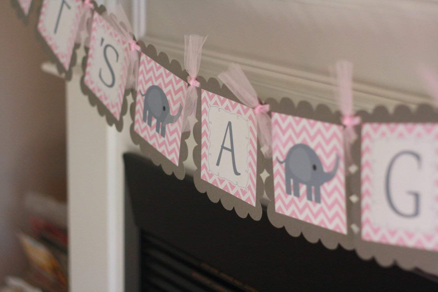 Amazon Com Elephant Pink Grey Chevron Baby Shower Banner