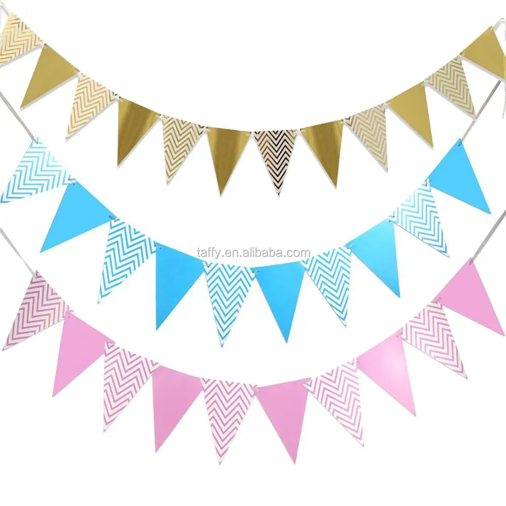 Pink Blue Glitter Chevron Triangle Flag Pennant Banner Bunting