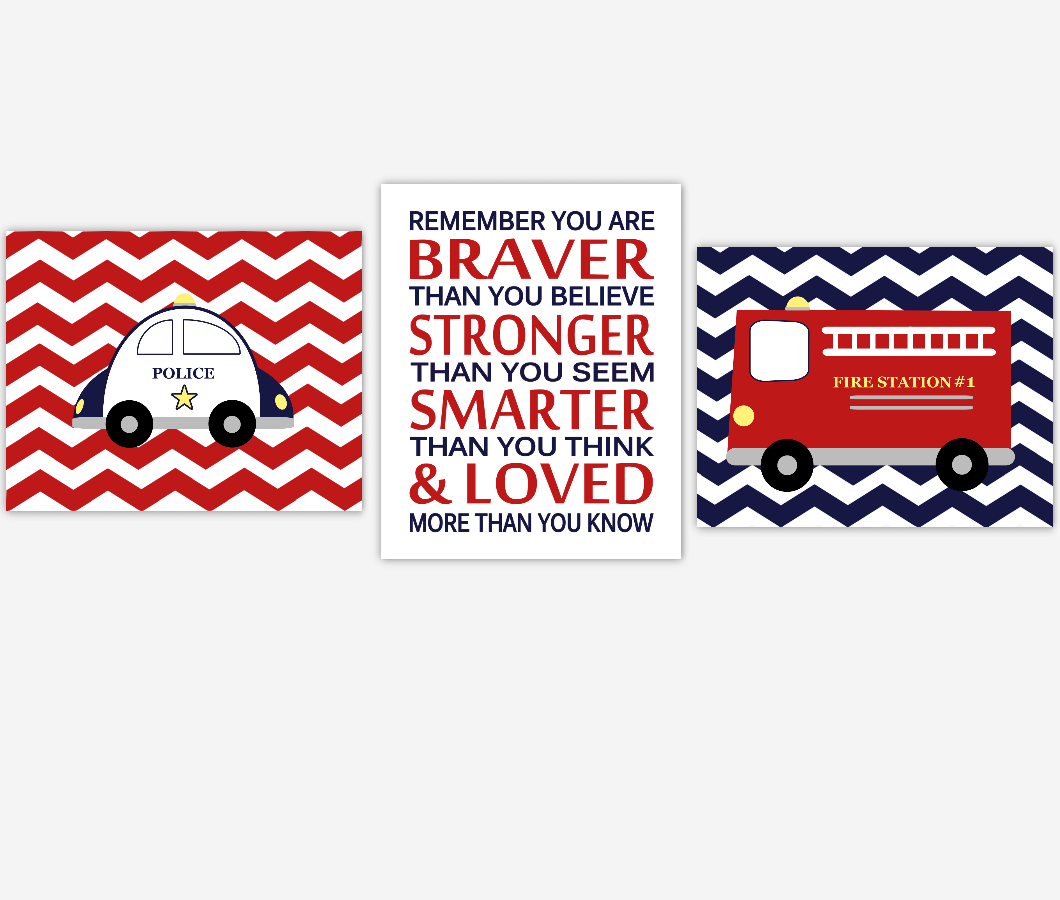 Baby Boy Nursery Wall Art Fire Truck Police Car Remember You Are