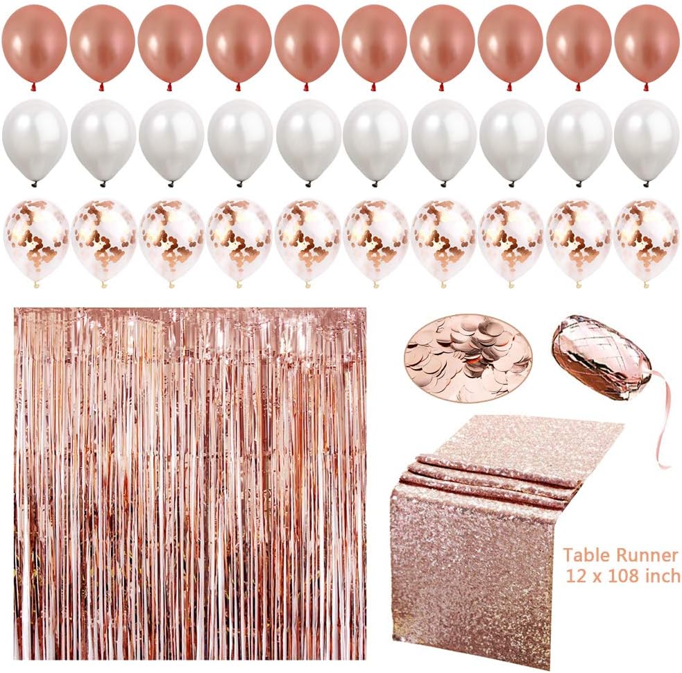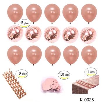 Rose Gold Party Latex Confetti Balloons Table Runner Paper Straw