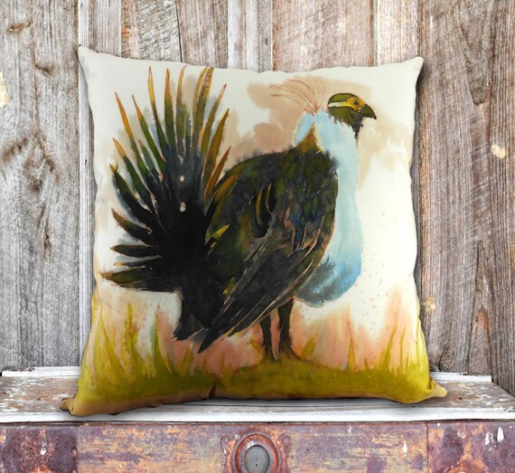 Game Bird Pillow Rustic Lodge Decor Sage Grouse Silk Art Etsy