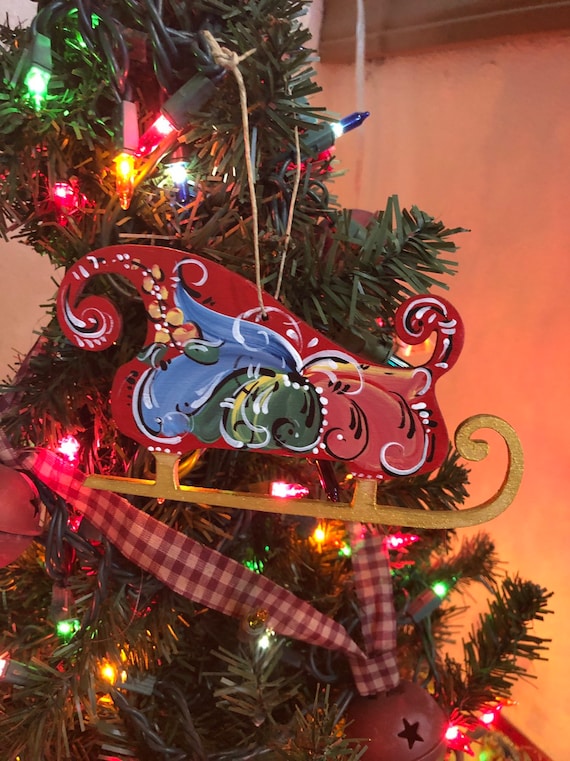 Norwegian Rosemaled Santa Sleigh Ornament Etsy
