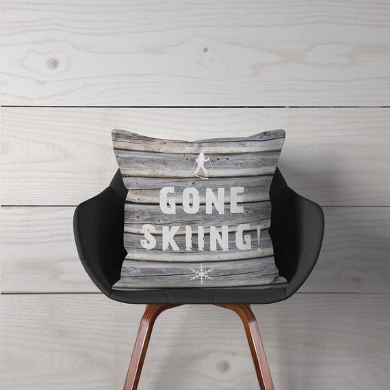 Ski Decor Pillow Gone Skiing 6 Sizes Home Decor Winter Etsy