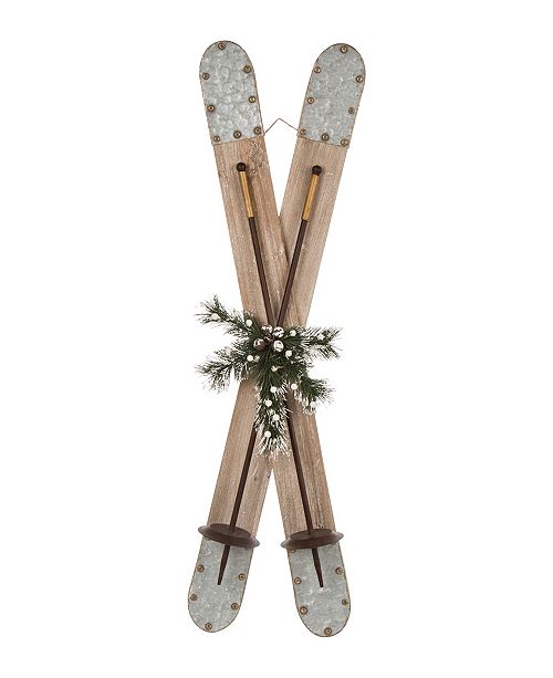Glitzhome Christmas Wooden Galvanized Ski Decor Reviews All