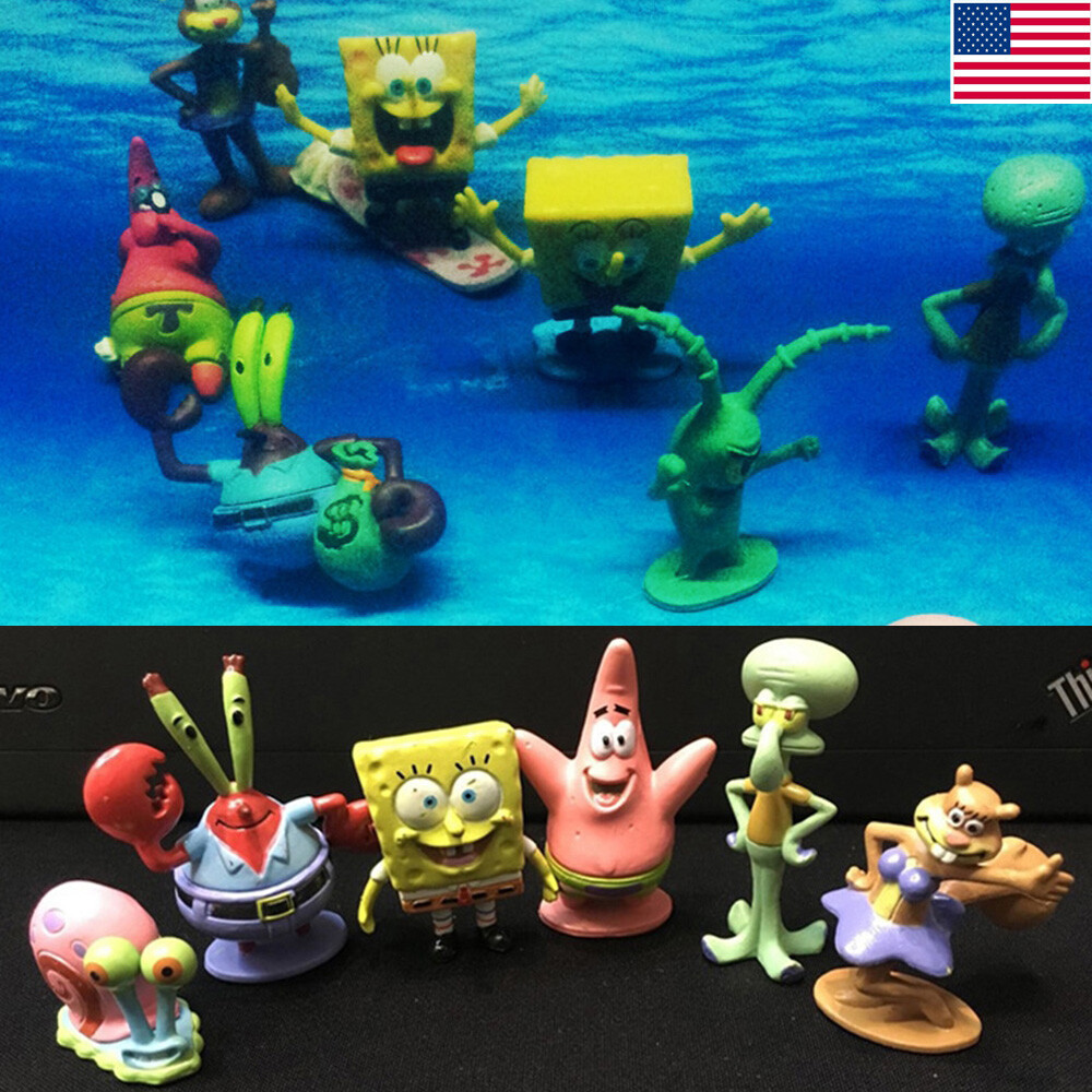 6 Pcs Fish Tank Decoration Spongebob Squarepants Aquarium Ornament