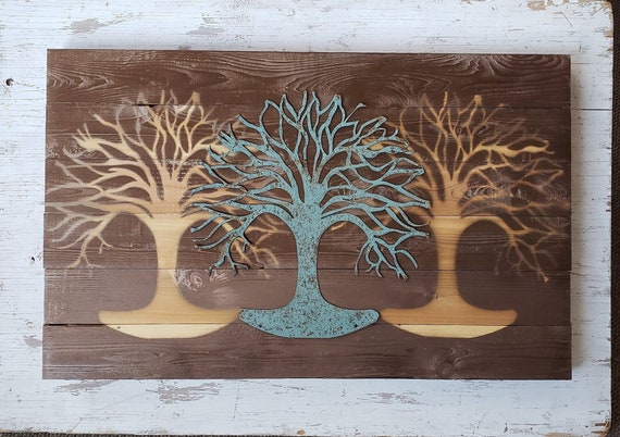 Reclaimed Wood Tree Of Life Wall Art Metal Wall Art Metal Etsy