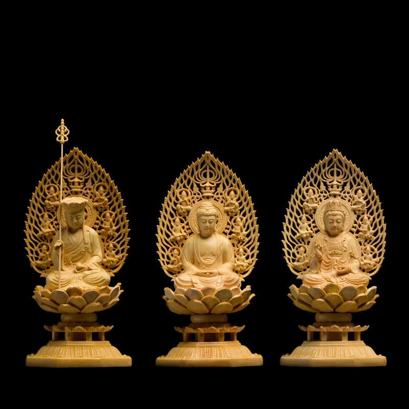 Japan Carving Buddha Statue Goddess Western Trinity Solid Wood