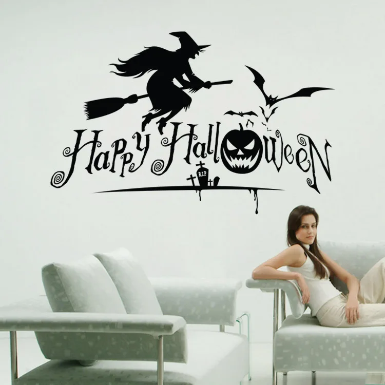 Popular Vinyl Removable 3d Wall Stickers Halloween Witch Decor