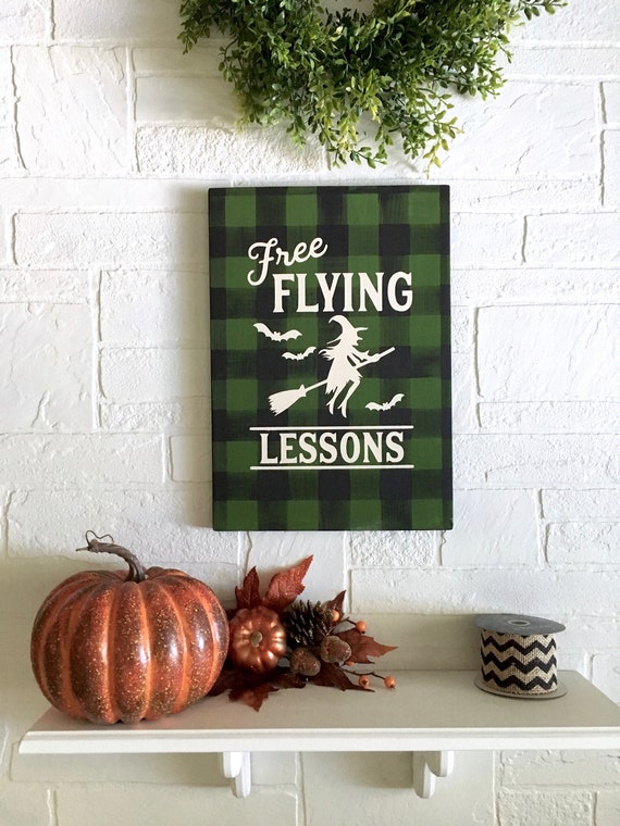 Witch Halloween Decor Free Flying Lessons Halloween Black And Etsy