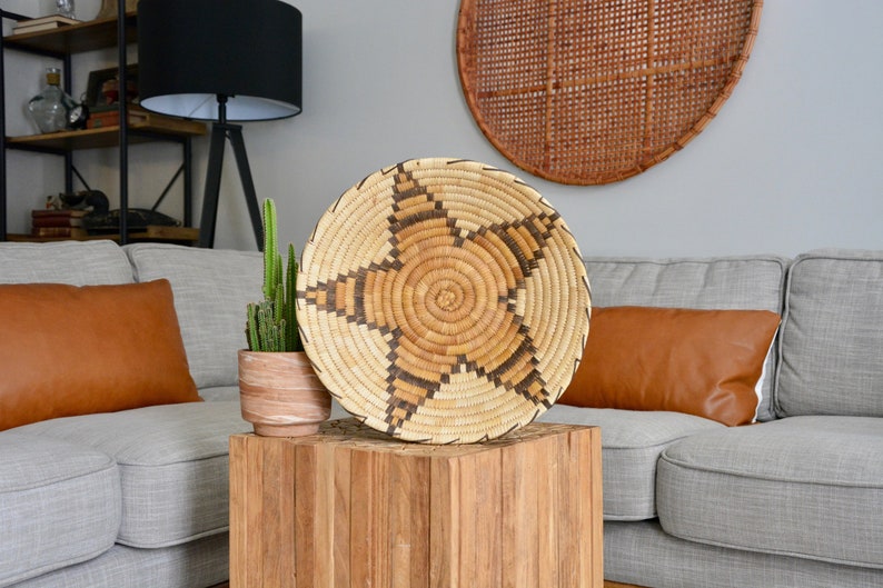 Flat Woven Basket Plate Bohemian Decor Southwestern Decor