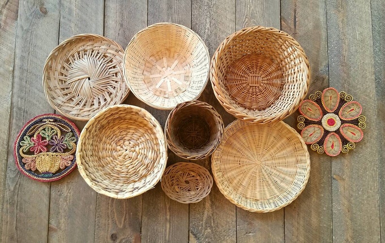 Wicker Rattan Baskets Vintage Set Of 9 Basket Wall Etsy