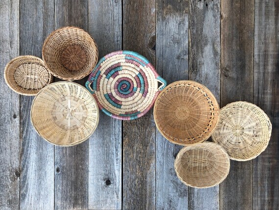 Boho Decor Woven Baskets Wicker Rattan Basket Vintage Set Etsy