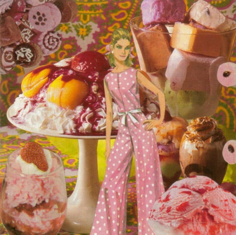 Original Collage 60s Decor For Kitchen Sweet Pink Decor Etsy
