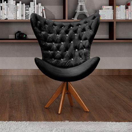 Poltrona Decorativa Preto Egg Com Capitone Strass Base Giratoria