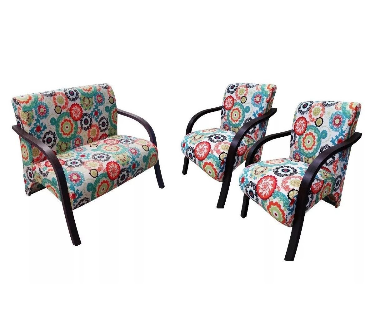 Conjunto Sevilha 1 E 2 Lugares Braco Madeira Bella Decor Estampado