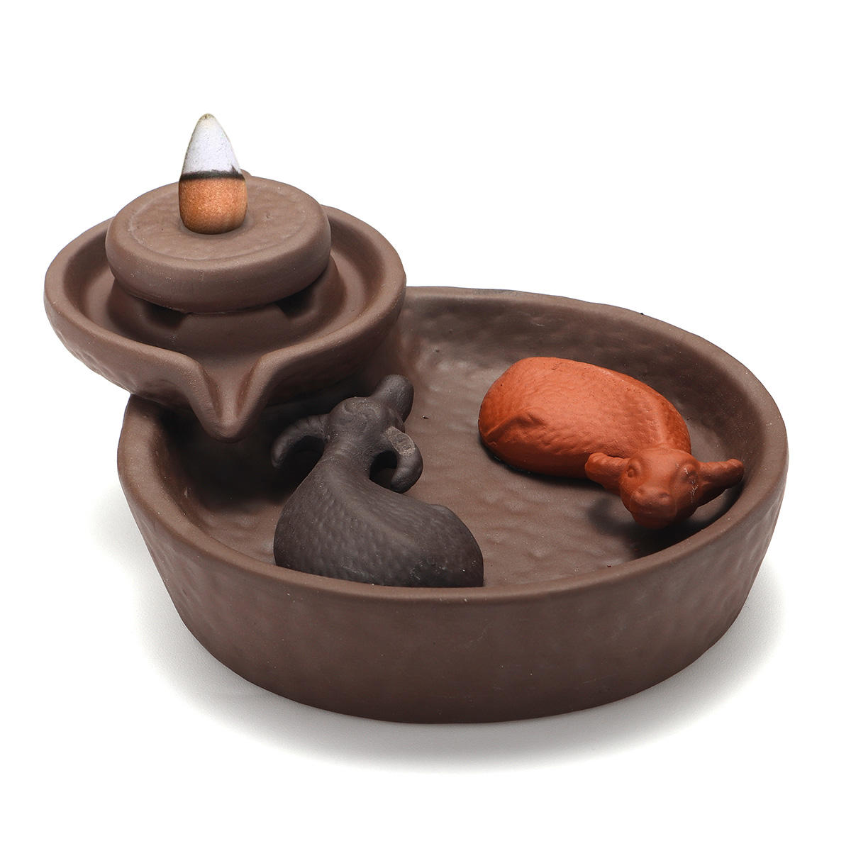 2 Buffalo Ceramic Backflow Incense Burner Cones Holder Sticks